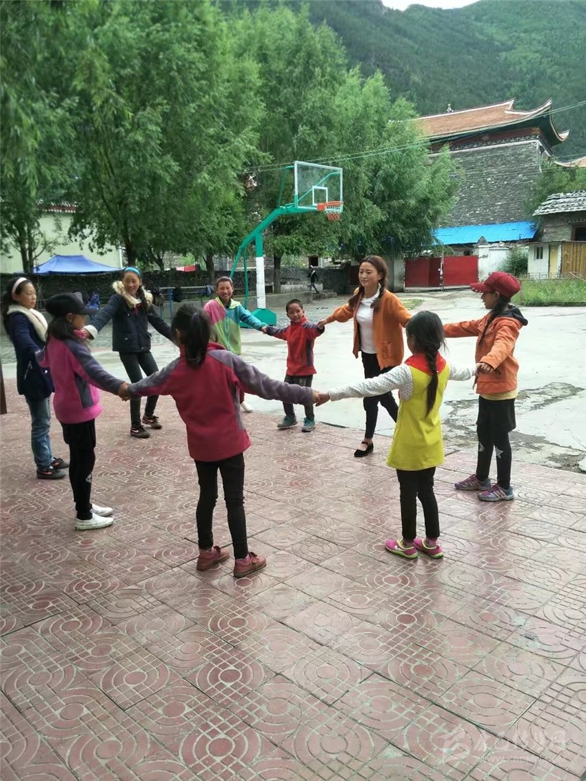 扎西拉姆帶領(lǐng)同學們做游戲。