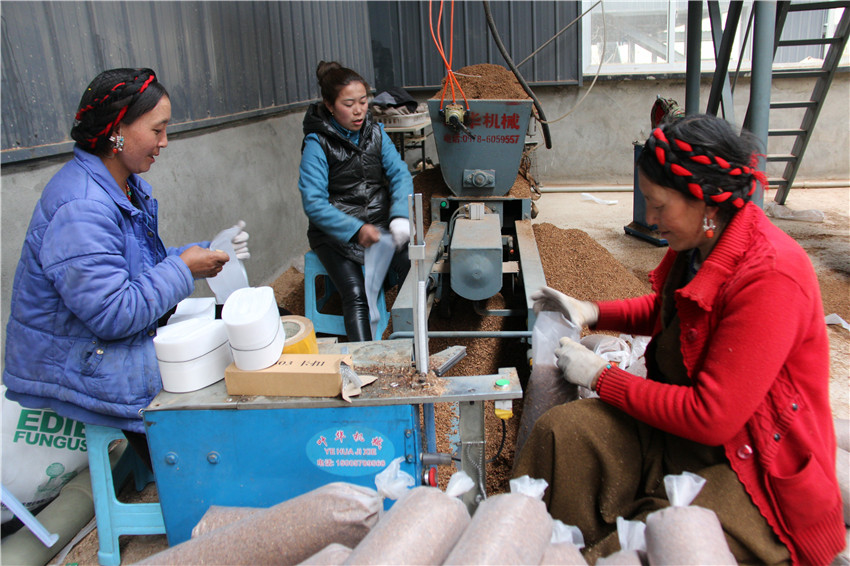 在雅江食用菌產(chǎn)業(yè)園區(qū)務(wù)工的村民。
