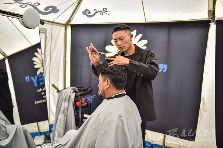 “有很多康巴漢子找我做造型,上個月,我把小帳篷換成了現(xiàn)在的大帳篷,進(jìn)行了一些簡單的裝飾,能容納更多人,大家剪頭發(fā)更方便了,游客也能看到更精致的康巴漢子。”曲燈桑珠自豪地笑著說。