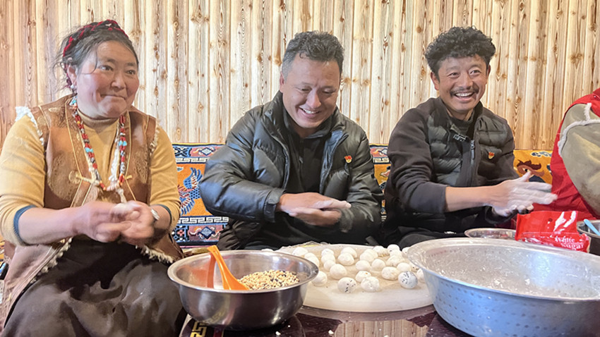 這邊拉著家常,那邊一碗碗熱氣騰騰的湯圓端上了桌。席間,朱文秀品嘗著這象征“團(tuán)圓”的湯圓,還不忘關(guān)心著格絨家的三女兒甲初拉姆的學(xué)習(xí)、就業(yè)意愿等情況,勉勵(lì)她要好好學(xué)習(xí),將來(lái)更好地建設(shè)祖國(guó)。